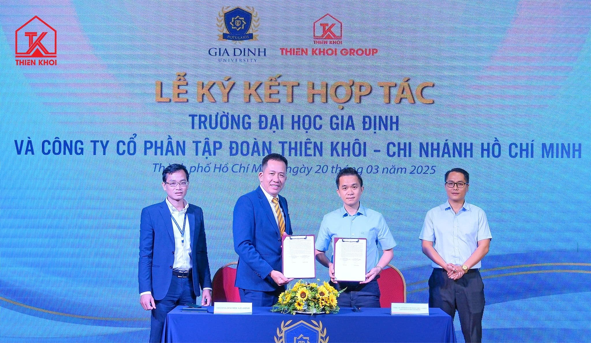 Thiên Khôi Group đã có mặt tại Trường Đại học Gia Định ngày 20/03/2025 để ký kết thỏa thuận hợp tác đào tạo, tạo bệ phóng sự nghiệp cho sinh viên. Sự kiện giúp mở rộng cơ hội thực tập, việc làm, gắn kết tri thức với thực tiễn..