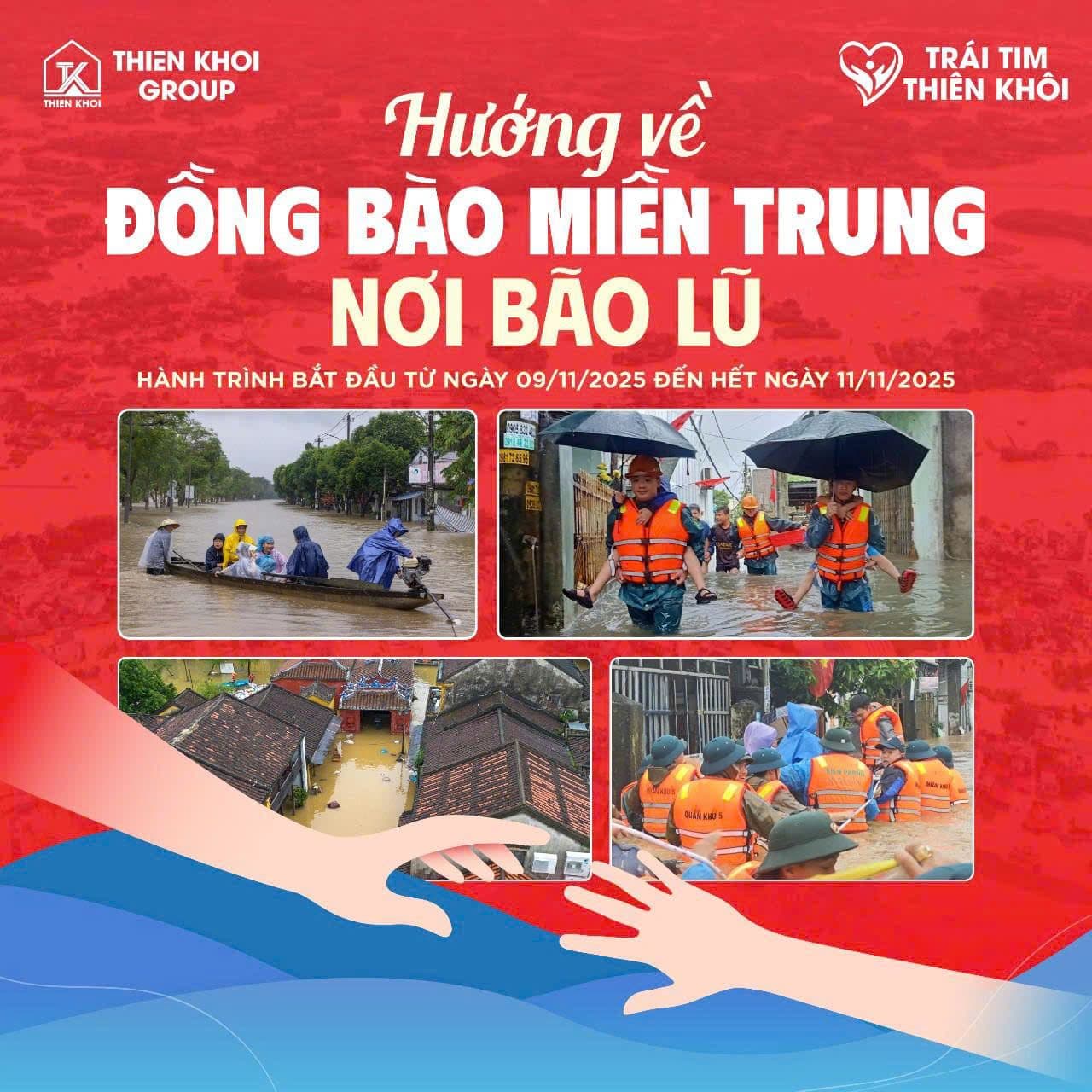 Chiều ngày 19/10/2025, Quỹ Trái tim Thiên Khôi – Thiên Khôi Group hoàn thành hành trình cứu trợ đồng bào chịu ảnh hưởng bởi cơn bão số 10 và số 11.